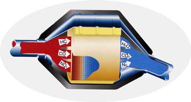 用于汽油發(fā)動機尾氣凈化系統(tǒng)的陶瓷催化劑載體,在載體表面涂上催化劑,在汽車尾氣通過時,將尾氣中的HC、CO、NOx等有害成份變成無害成份。