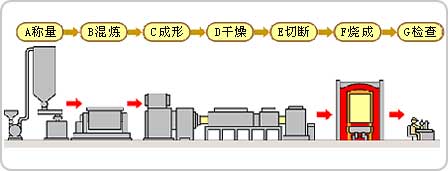 F | 燒成 | 將切斷規(guī)定長(zhǎng)度后的產(chǎn)品進(jìn)行燒結(jié) |